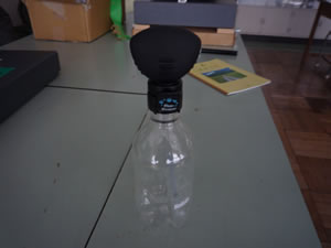 - ペットボトルに温度計を入れ、ふたにポンプを用意した器具を使用。