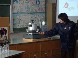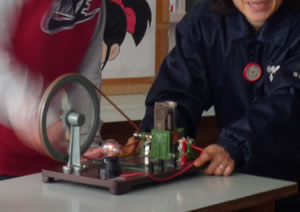 電力会社の実験器具を使い、電気を作る過程から説明できたため、家庭の中で行う省エネ活動に説得力もって説明できた。
