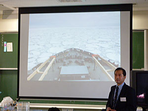 南極観測隊の昭和基地での仕事や生活の様子を学ぶ。南極の氷の音を聞く実験を実施。その実験を観察することにより、氷に詰まっていた数千年前の空気に触れて、自分達が地球環境を守るために何ができるかを学習する。
