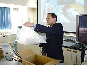 - 南極の氷を児童に配る。