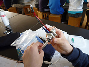 水素と酸素で電気と熱が出来ることや燃料電池が二酸化炭素を排出しないことを知り、また実際に燃料電池で発光ダイオードやオルゴールが鳴る実験を通して、燃料電池が地球環境にやさしいものやエネルギーとしてこれから先必要なものだと理解できたようだった。