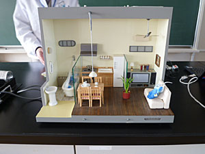 - 家庭用燃料電池からハウス模型へエネルギーを送る。